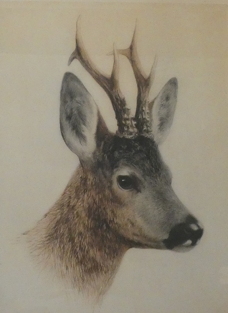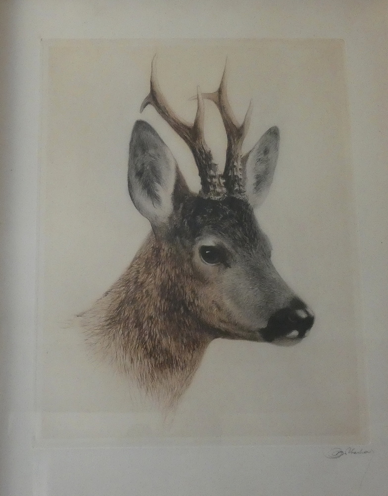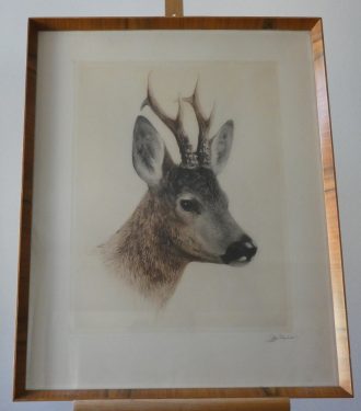 Duża akwaforta jeleń Kurt Meyer-Eberhardt