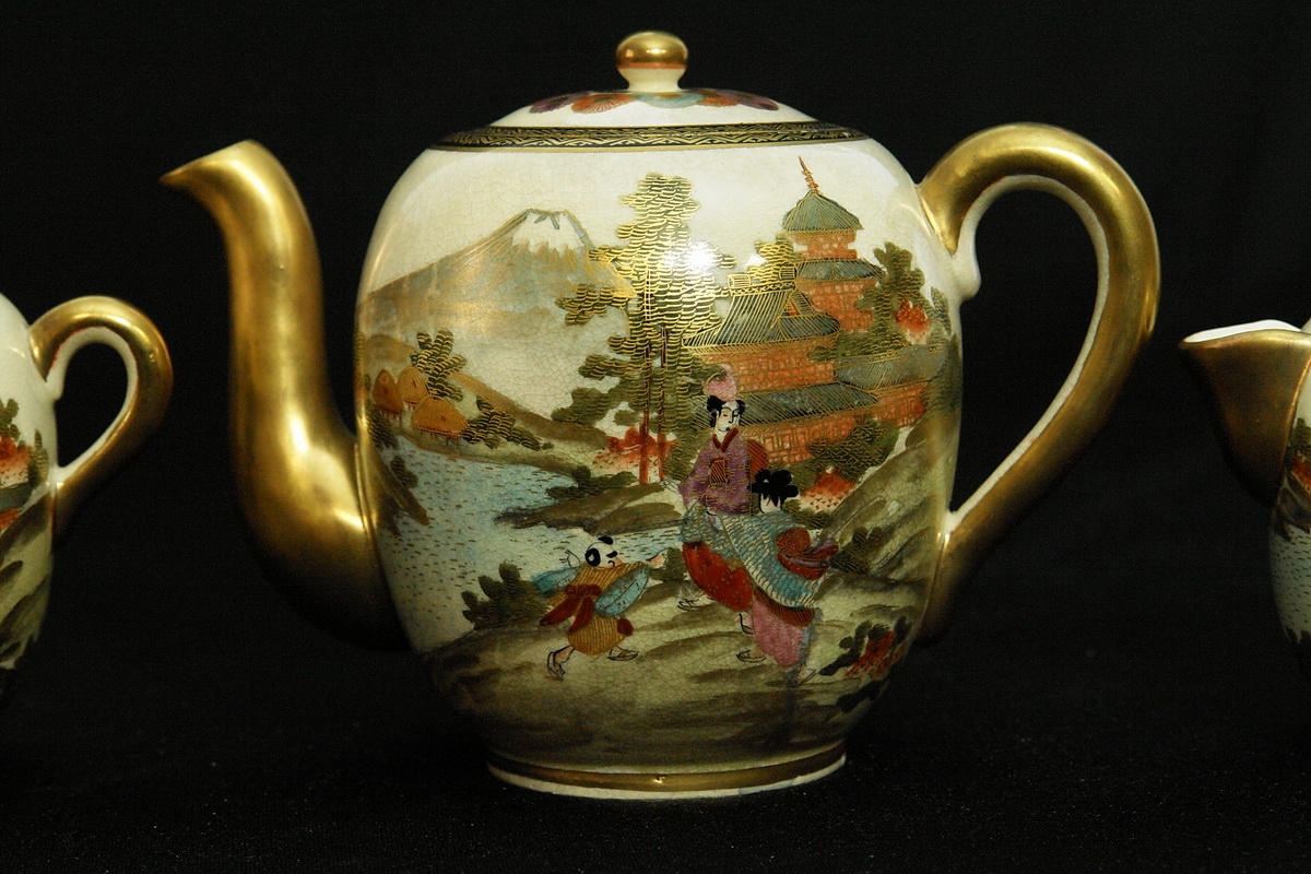Stan widoczny na fotografiach. Przykrywka dzbanka delikatne przetarcia porcelany