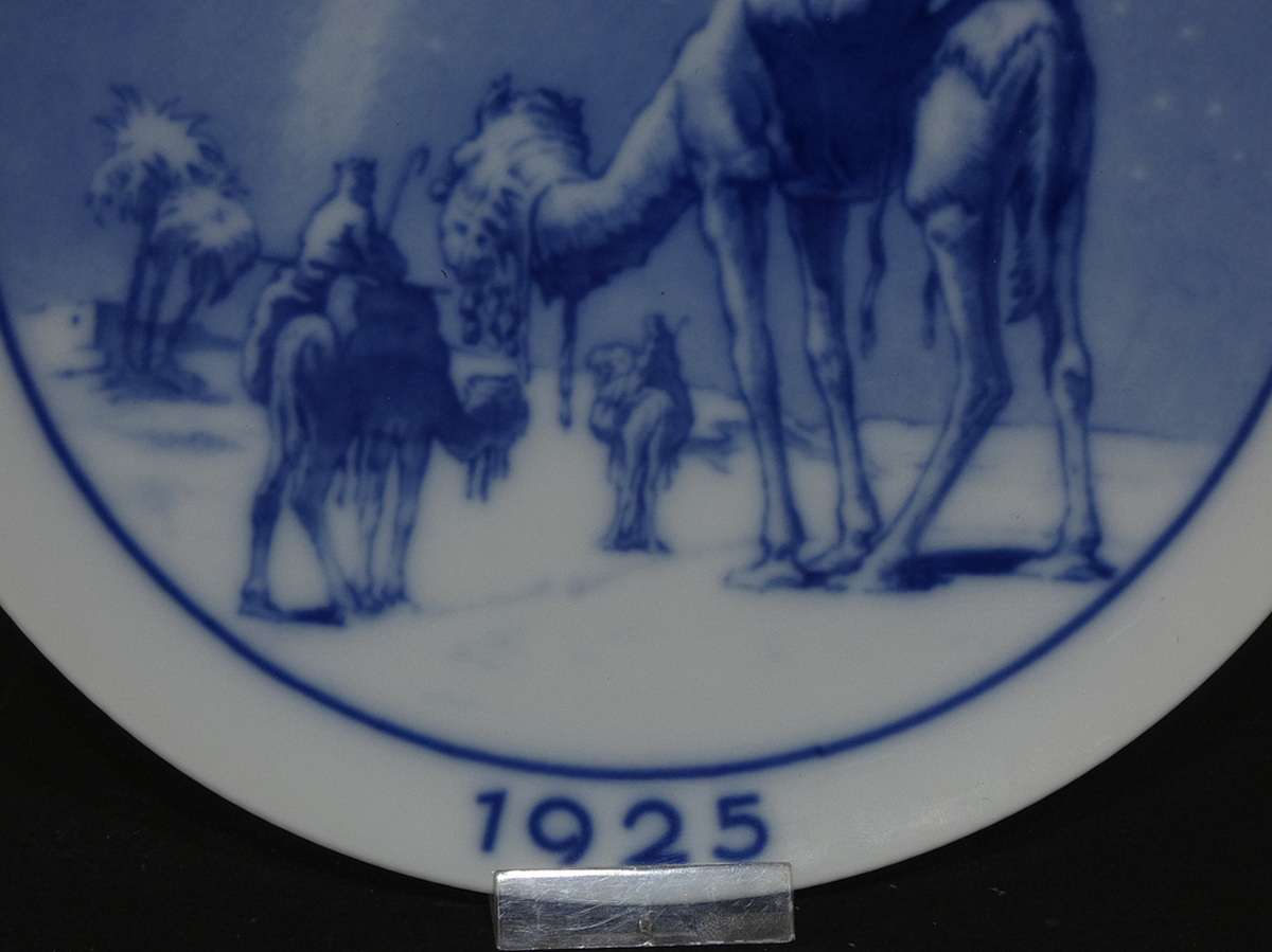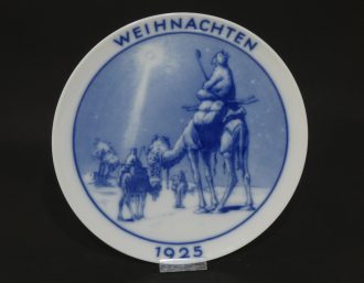 Biała porcelana dekorowana motywem kobaltowym z napiesm Weihnachter 1925.