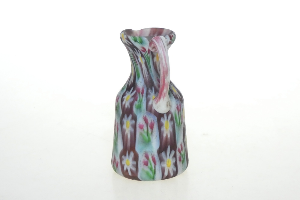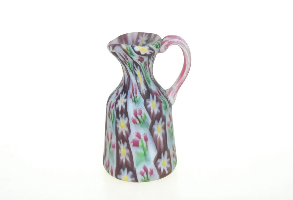 Dzbanuszek wykonany jest w technice szkła mozaikowego tzw: ‚millefiori”
